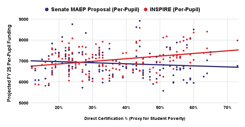 The INSPIRE formula is clearly far more equitable than MAEP. The statistical evidence is unambiguous: INSPIRE would provide additional funding to districts with higher rates of student poverty; under a revised MAEP, there is no relationship between funding and poverty. For anyone who shares our ultimate goal of ensuring that public schools receive the resources necessary to meet the unique needs of each student they serve, the choice is clear.